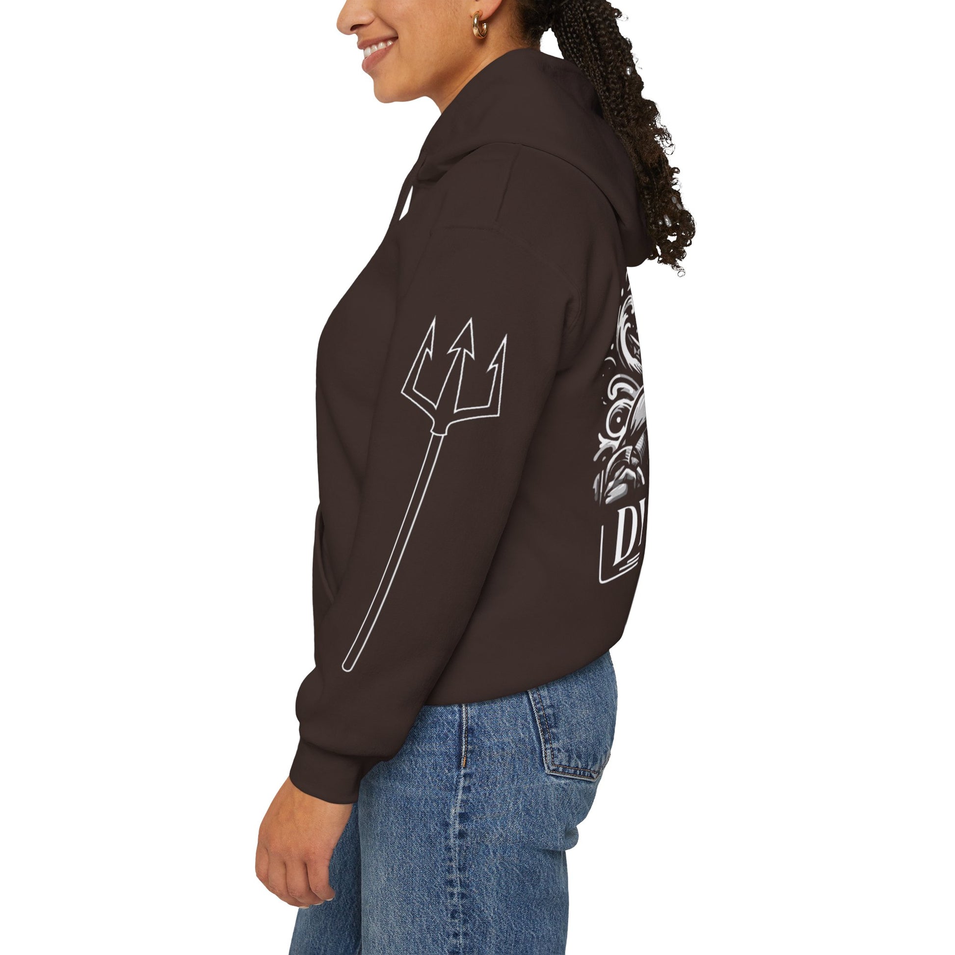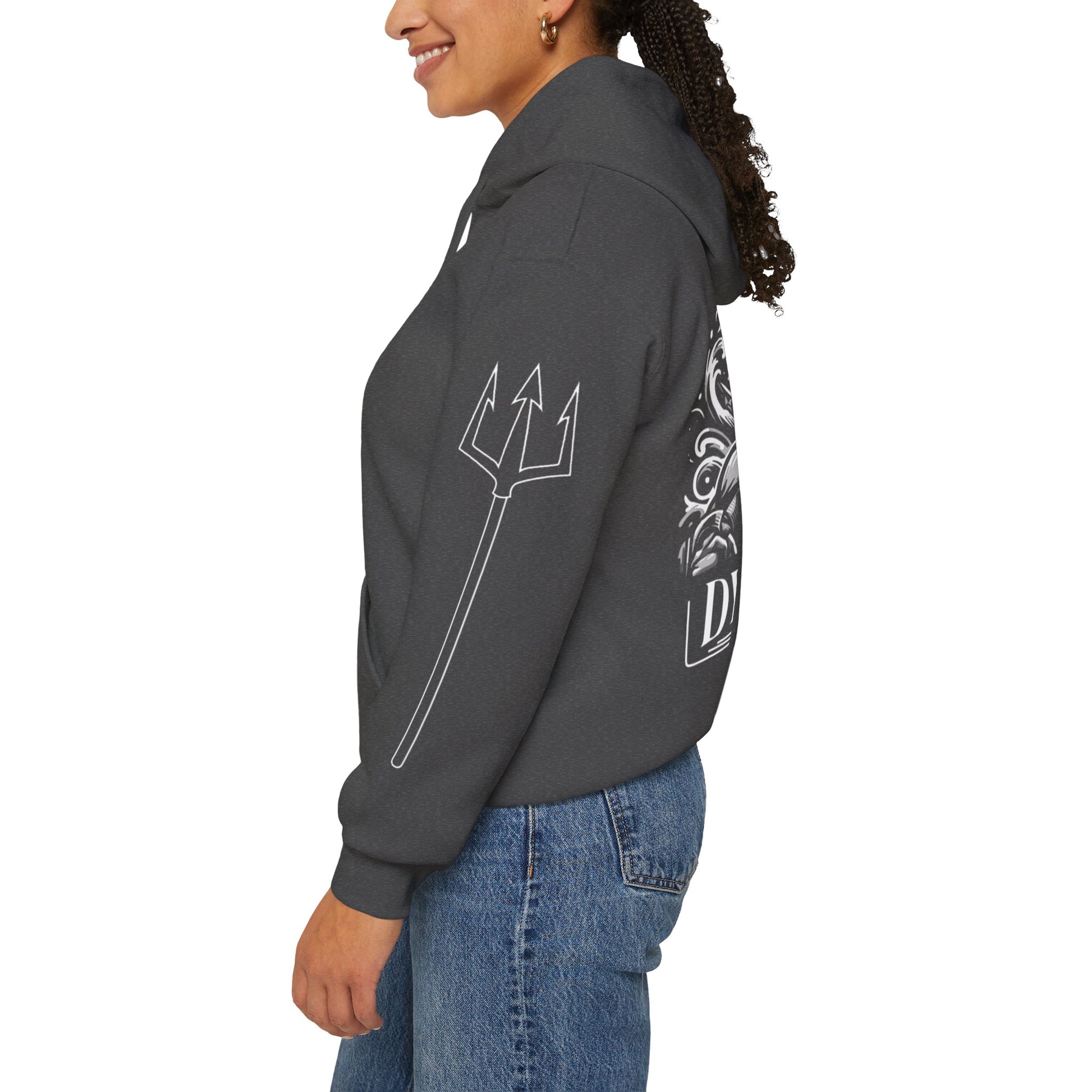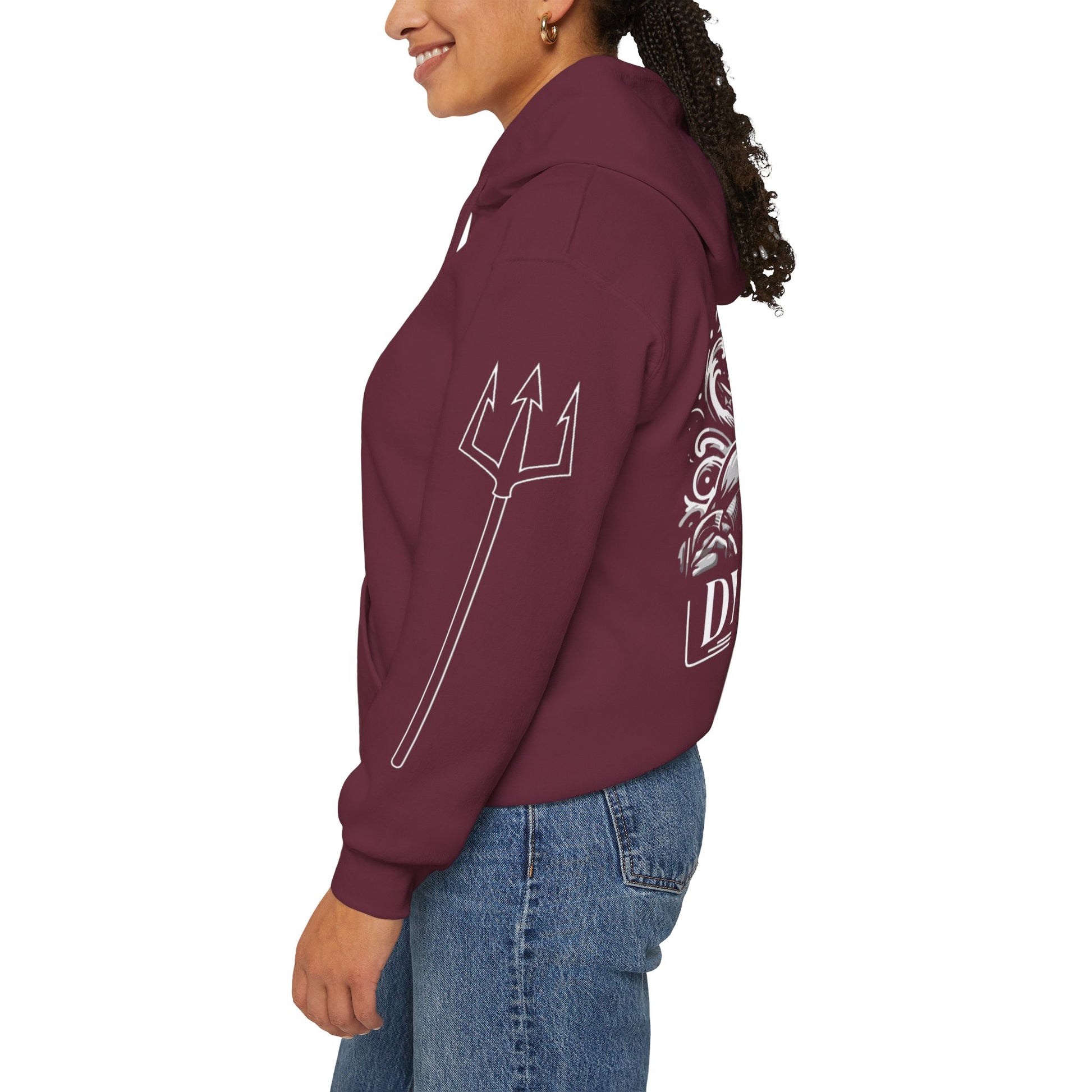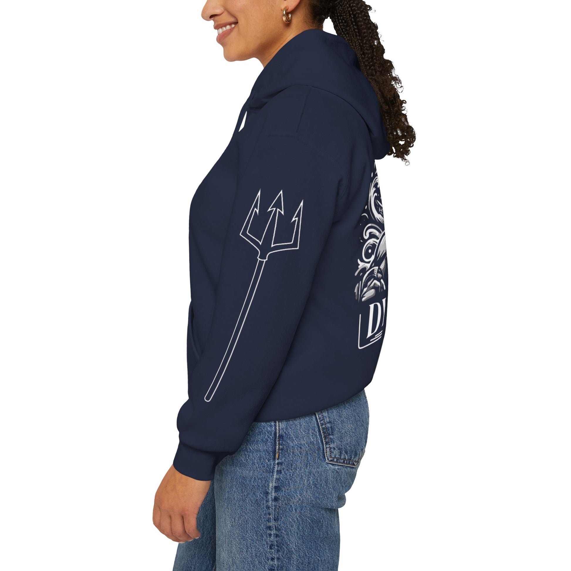 The Poseidon hoodie is made with a thick blend of cotton and polyester, it feels plush, soft, and warm, a perfect choice for any cold day. The spacious kangaroo pocket adds daily practicality in the front while the hood's drawstring is the same color as the base sweater for extra style points.